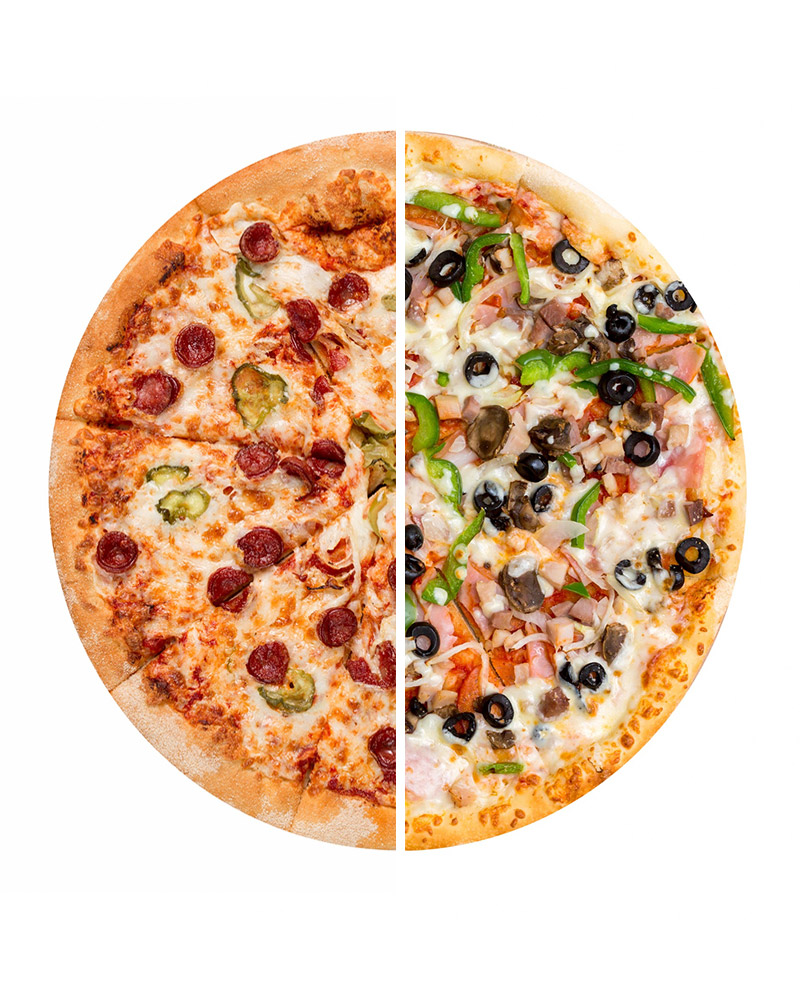 Choose your favorite flavors and create your own 2 halves pizza. Add extra toppings and make it really yours.